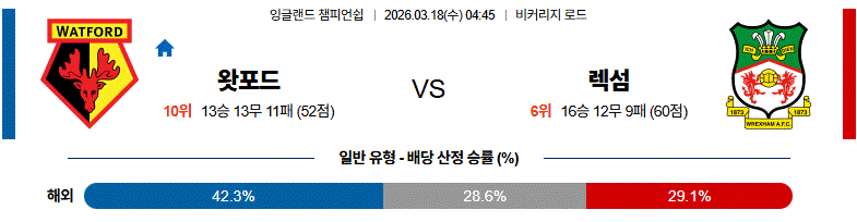 전체적으로 활동량과 공격 전개에서 우위를 보이는 렉섬이 경기 주도권을 잡을 가능성이 있는 경기입니다.