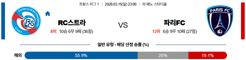 이번 경기는 홈에서 공격적인 전개를 펼치는 RC 스트라와 안정적인 수비 운영을 하는 파리 FC의 대결입니다.