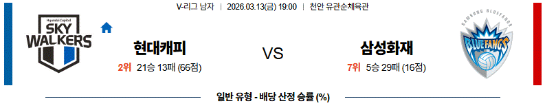 # 홈팀 : 현대캐피탈(21승13패)