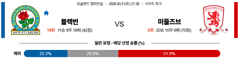 특히 박스 주변에서 이루어지는 콤팩트한 2대1 원투패스는 블랙번이 가장 불편해하는 유형의 전개라, 반복될수록 미들즈브러 쪽 찬스 빈도가 눈에 띄게 올라갈 공산이 크다.
