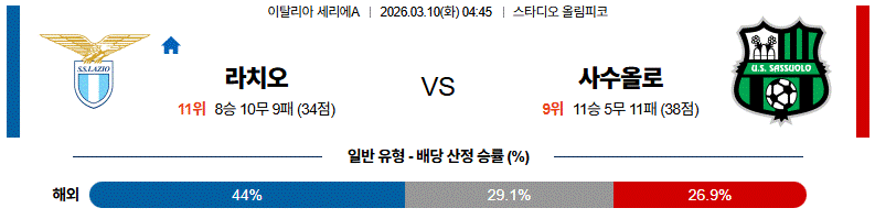 하지만 사수올로 역시 역습과 공격 전개에서 위협적인 모습을 보이며 최근 경기 흐름도 좋은 상황입니다.