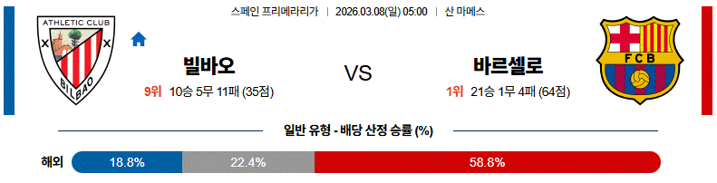 전술적 상성과 공격 패턴의 반복 가능성을 기준으로 보면, 바르셀로나 쪽 득점 기대값이 빌바오보다 좀 더 안정적으로 형성될 것으로 보는 해석이 설득력을 가진다.
