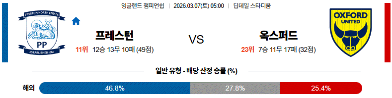 전술 구조와 경기 흐름, 그리고 역습 완성도까지 종합하면, 이번 경기는 프레스턴 승리 쪽으로 해석하는 것이 실전 베팅 관점에서도 보다 현실적인 선택으로 보인다.