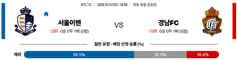 서울이랜드는 홈 경기에서 강한 압박과 조직적인 수비를 통해 경기 흐름을 안정적으로 가져가려 할 가능성이 높습니다.