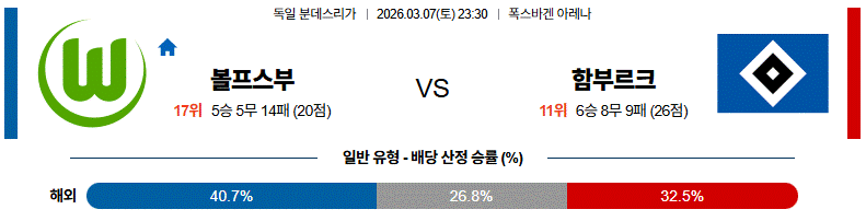 반면 함부르크는 강한 압박과 빠른 역습을 통해 득점 기회를 노릴 것으로 보입니다.