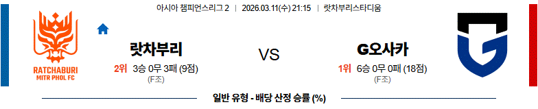 랏차부리도 홈 이점을 바탕으로 공격 기회를 만들 수 있지만 경기 흐름은 감바오사카가 주도할 가능성이 높습니다.