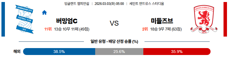 버밍엄C는 강한 중원 압박을 바탕으로 빠른 전방 전개를 통해 공격 기회를 만들려는 흐름이 기대됩니다.