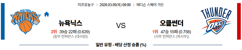 뉴욕 닉스 vs 오클라호마시티 썬더 경기 분석