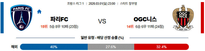 이 매치업에서는 공을 오래 소유하는 팀이 아니라, 탈압박 이후 전환 한 번으로 경기 흐름을 바꿀 수 있는 팀에게 승부의 추세가 기울 가능성이 크고, 그 조건에 더 가까운 쪽은 파리FC라고 보는 편이 타당하다.