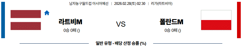 라트비아는 오스트리아전 승리로 반등했지만 핵심 다비스 베르탄스와 로디온스 쿠루츠, 아르투르스 자가르스 결장 공백이 크다. 리카르츠 로마즈와 카를리스 실린슈 중심의 공격은 유지되고 있으나 수비 집중력 기복과 리바운드 경쟁에서 불안이 남아 있다. 반면, 폴란드는 예선 2연승으로 상승 흐름을 이어가며 제릭 하딩과 마테우시 포니트카, 미하우 소콜로프스키 중심의 공수 밸런스가 안정적이다. 후반 압박과 전환 공격 완성도가 높고 경기 운영에서도 앞선 모습이다. 폴란드의 승리가 예상된다.