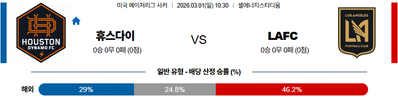 ⚠️ 수비 블록 안쪽이 무너지는 휴스턴의 구조적 약점과, 그 공간을 정교하게 활용할 수 있는 LAFC 2선 자원들의 조합을 고려하면 이 경기는 LAFC 우위의 승부로 보는 편이 합리적이다.