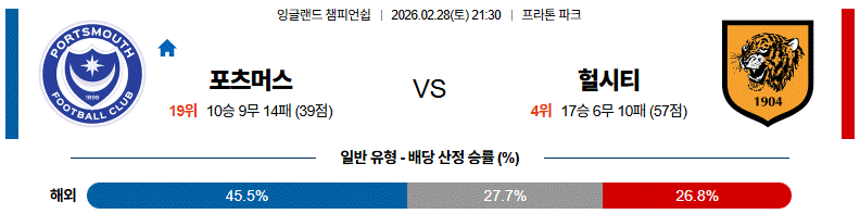 [승/무/패] 포츠머스 패 ⭐⭐⭐⭐ [강추]