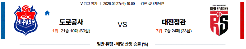 # 홈팀 : 한국도로공사(21승10패)
