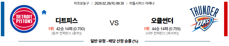 올스타 듀오가 빠진 오클라호마의 전력 누수와 체력적 열세를 공략할 커닝햄 중심의 디트로이트가 화력에서 우위를 점하며 승리할 것입니다.