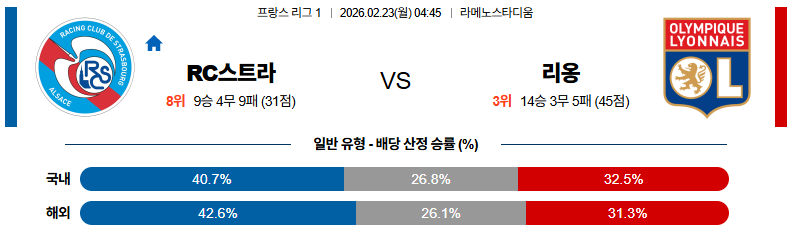 전체 흐름은 리옹이 볼을 소유하되, 스트라의 역습과 세트피스가 변수가 될 수 있는 구도입니다.
