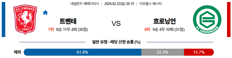 트벤테는 홈에서 점유율을 바탕으로 안정적인 경기 전개를 하는 팀입니다.