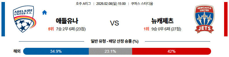 이 경기는 애들레이드의 빌드업이 뉴캐슬 제츠의 강도 높은 전방 압박을 어디까지 버티느냐가 핵심 변수가 된다.