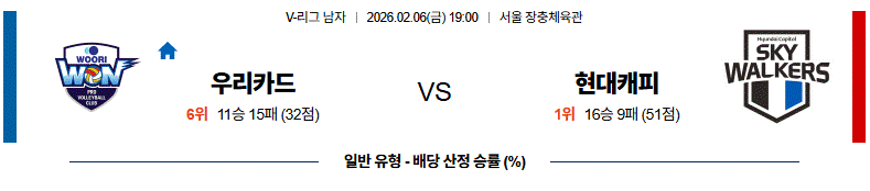 # 홈팀 : 우리카드(11승15패)