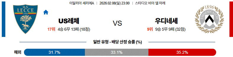 레체는 강한 체력 기반의 압박과 단단한 수비 조합으로 세리에A에서 생존력을 보여주고 있습니다.