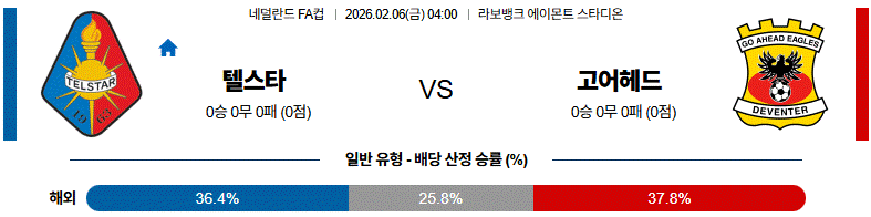 홈에서 텔스타의 수비 저항이 있겠지만, 전체 전력과 경기 운영에서는 고어헤드가 우위를 점하는 매치업입니다.