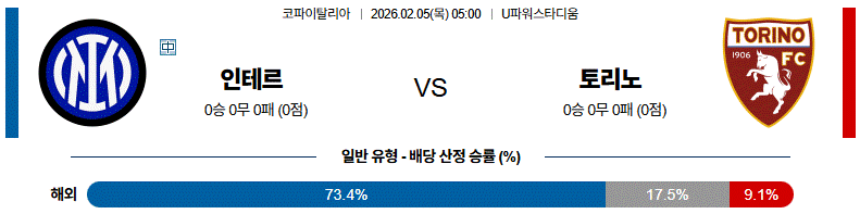 토리노가 수비적으로 버티겠지만, 경기 운영과 전력 완성도에서는 인테르가 앞서는 매치업입니다.