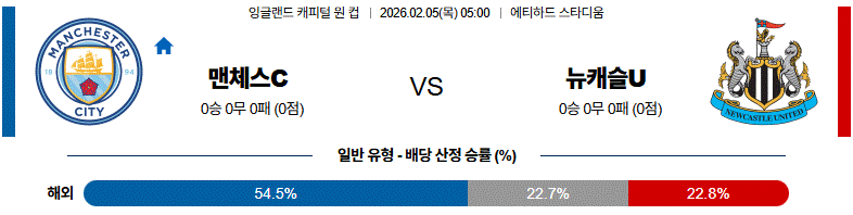 뉴캐슬U의 수비 저항이 있겠지만, 경기 운영과 공격 완성도에서는 맨체스C가 앞서는 매치업입니다.
