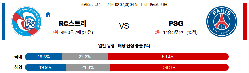 스트라스부르의 후방 실수와 느린 빌드업 구조를 고려하면, 경기 중 어느 시점엔가 파리생제르망이 한 번 라인을 깨고 나면 이후엔 추가 득점으로 이어질 여지도 충분하다.