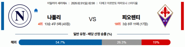 전체적으로 나폴리 우세 흐름이 예상됩니다.