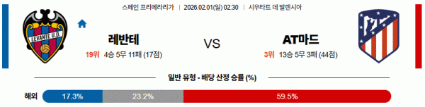 레반테는 수비적으로 내려서며 실점 억제에 집중하겠지만, 아틀레티코 마드리드의 조직적인 운영을 막아내기에는 한계가 있습니다.