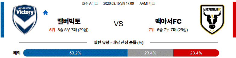 열람 축구 3월 15일 호주 A리그 멜버른 빅토리 FC vs 맥아서 FC 해외축구분석 3 03-13
