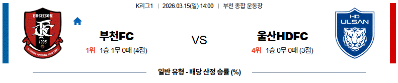 열람 축구 3월 15일 K리그 1 부천 FC vs 1995 울산HD 축구분석 5 03-13