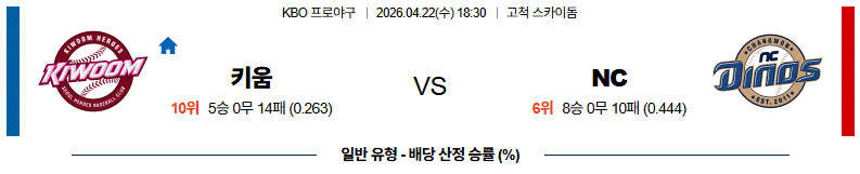 4월 22일 키움 vs NC KBO야구분석