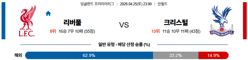 [승/무/패] 리버풀 승 ⭐⭐⭐ [추천]