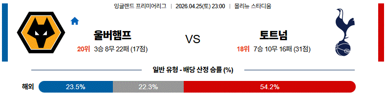 결국 이 경기는 울버햄튼의 불안한 수비 구조와 토트넘의 높은 동기부여, 그리고 세트피스 디테일이 맞물리며 원정 쪽으로 흐름이 기울 가능성이 높다.