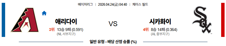 [메이저리그] 04월24일 시카고W vs 애리조나 경기분석
