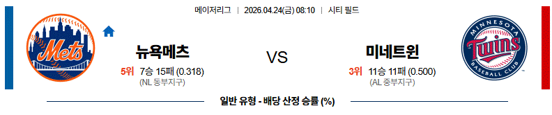 [메이저리그] 04월24일 미네소타 vs 뉴욕M 경기분석