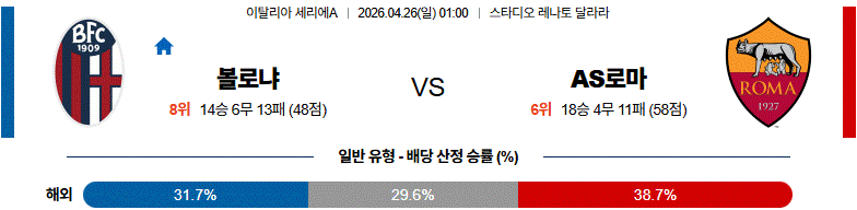결국 이 경기는 볼로냐 패 쪽으로 무게를 두는 접근이 맞다.