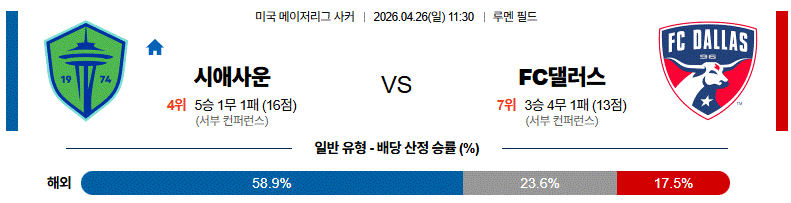 하지만 시애틀이 홈에서 전방 압박을 밀어붙이며 세컨볼 경쟁력까지 살려낸다면, 댈러스가 원하는 속도로 경기를 풀어가기 쉽지 않다.