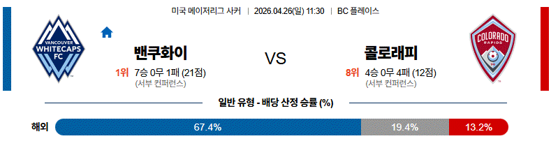 하지만 벤쿠버가 더블 볼란치 앞 공간만 잘 지우면, 콜로라도의 공격은 박스 안 숫자 싸움으로 넘어가기 전에 끊길 가능성이 높다.