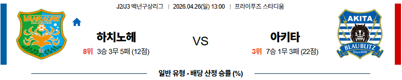 결국 이 경기는 하치노헤 반라우레가 만들다 끊기는 공격보다, 아키타가 끊어내자마자 바로 찌르는 공격이 더 실전적으로 먹히는 흐름으로 전개될 공산이 크다.