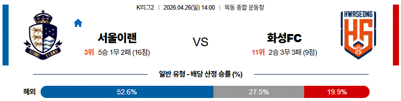 ⚠️ 전환 구조의 정교함과 세트피스 한 방, 그리고 박스 근처 공격 완성도까지 모두 따져보면 이 경기는 서울이랜드 쪽으로 기울 가능성이 높다.