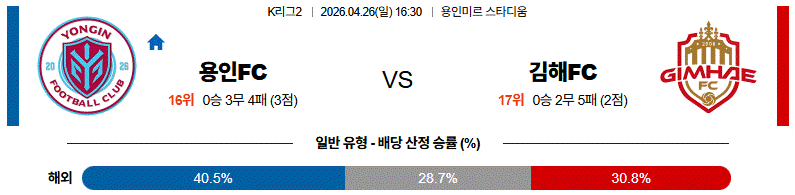 결국 첫 승이 절실한 신생팀들의 맞대결이지만, 중원 구조와 심리적 결집력까지 함께 따져 보면 용인 쪽 기대값이 더 높게 잡히는 매치업이다.