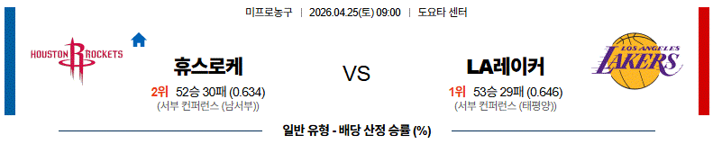 LA레이커스는 PO 1라운드 2차전이였던 직전경기(4/22) 홈에서 휴스턴 상대로 101-94 승리를 기록했으며 PO 1라운드 1차전(4/19) 홈에서 휴스턴 상대로 107-98 승리를 기록했다. 5연승 흐름 속에 리바운드 37-42, 3점슛 13-7, 턴오버 12-15의 결과. 루카 돈치치와 오스틴 리브스의 결장 상황에서도 팀 조직력을 앞세운 경기력으로 마지막 고비를 넘어섰던 경기. 르브론 제임스(28득점,8리바운드)가 경기 전체를 조율하며 중심을 잡았고 마커스 스마트(25득점,7어시스트)가 외곽과 돌파에서 공격을 이끌었던 상황. 또한, 루크 케너드(23득점) 역시 꾸준한 득점으로 지원했고 4쿼터 접전 상황에서도 리드를 유지하며 경기 운영에서 안정감을 보여줬다. 원정경기에서는 25승16패 성적.