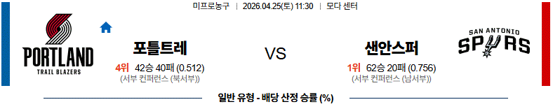 # 홈팀 : 포틀랜드(42승40패)
