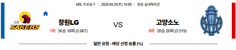 # 홈팀 : 창원LG (정규시즌 36승18패)