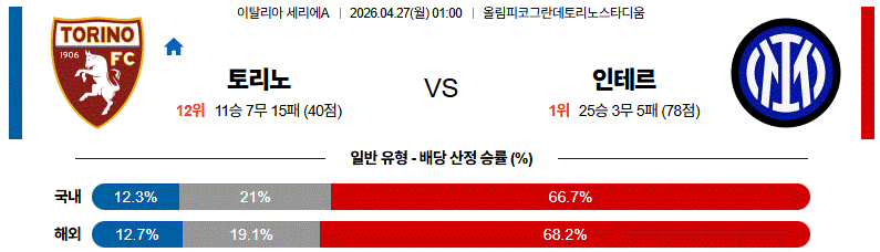 [승/무/패] 토리노 패 ⭐⭐⭐ [추천]