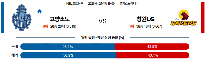 # 홈팀 : 고양 소노 (정규시즌 28승26패)