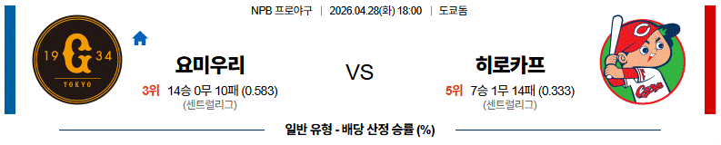 4월28일 18:00 요미우리 VS 히로시마 NPB야구분석
