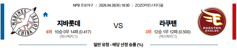 4월28일 18:00 지바롯데 VS 라쿠텐 NPB야구분석