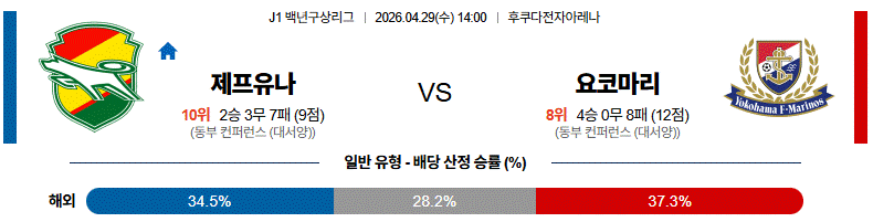 그럼에도 제프 유나이티드가 홈에서 초반 압박 강도를 높이며 버티려 하겠지만, 후반으로 갈수록 중원 간격과 박스 앞 대응에서 균열이 커질 가능성이 높다.